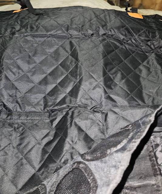 Fits very weel. Good material. Zippers at the side flaps are ideal for letting the dog in and out.